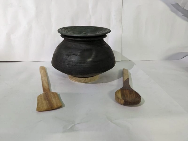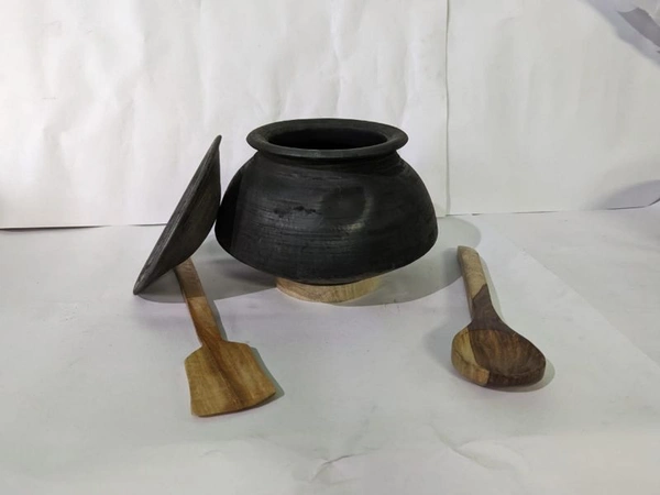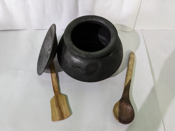 Black Cooking Handi Approx 2 Litre With Wooden Accessories