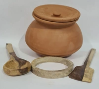 Red Cooking Handi (3 Litre) With Wooden Accessories